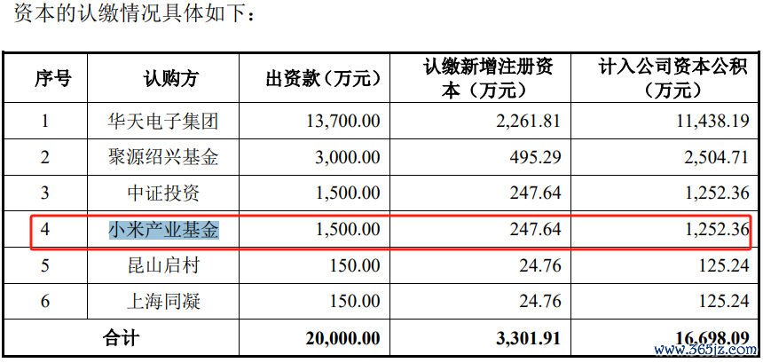 2021年6月29日,天健会计师出具“天健验[2021]354号”《验资报告》,确认截至2021年6月18日,华羿微电已收到股东华天电子集团、昆山启村、上海同凝、聚源绍兴基金、中证投资、小米产业基金缴纳的新增注册资本合计3301.91万元,计入资本公积(股本溢价)16698.09万元,各出资者以货币出资2亿元。