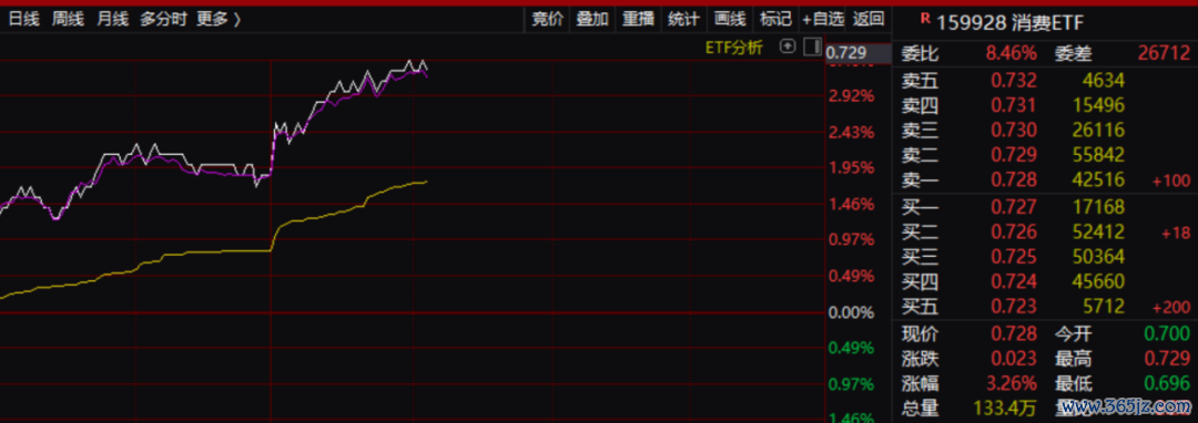 但从市场情绪来看,已经非常明显地在反映这种预期。今天,房地产ETF亦是大涨,同时,银行板块却再度迎来调整。这种结构亦与此利好相关。地产股午后涨幅扩大,金地集团、天地源此前涨停,我爱我家、城建发展、阳光股份等多股涨逾8%。午后,消费亦大举发力,消费ETF涨超3%。