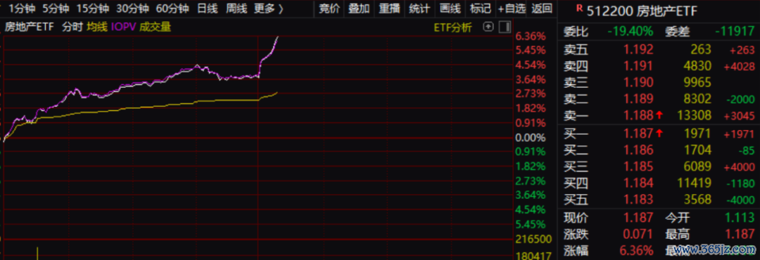 今天午后,房地产板块狂飙,房地产ETF大涨超6%。