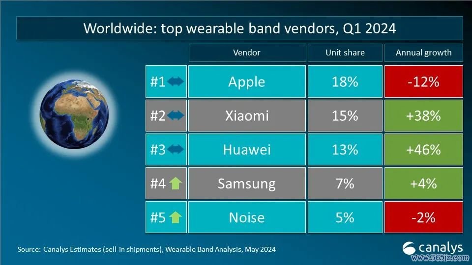 股票小额配资 Canalys:一季度全球可穿戴腕带设备出货量4120万台 苹果、小米、华为分列前三