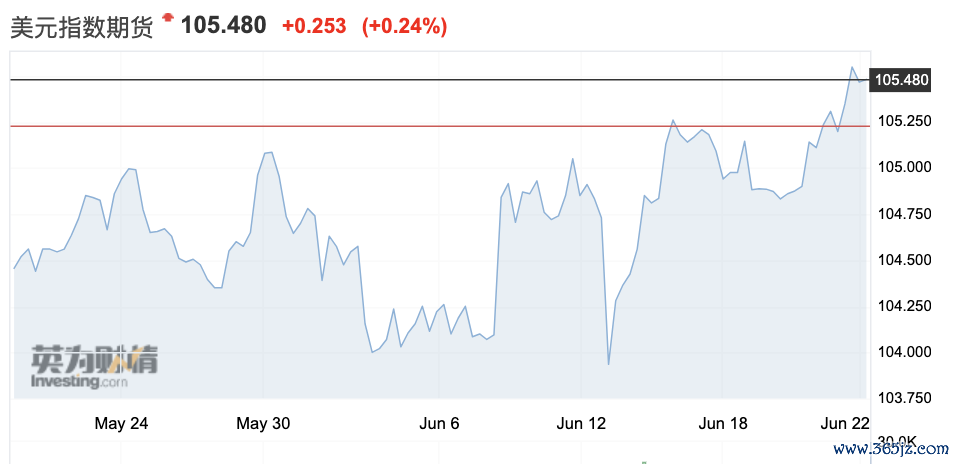 6月12日公布的美国5月CPI同比涨幅从3.4%降至3.3%(环比仅为0),超级核心CPI月率两年来首次出现负增长,不过考虑到美联储需要观察连续2~3个月的数据,美元指数短线走跌下破104后迅速拉起,目前再度向106发起进攻。