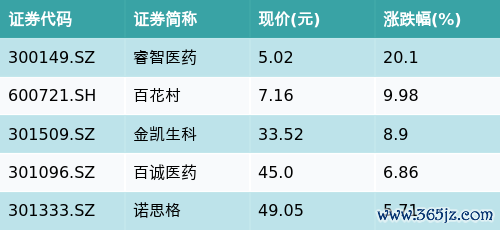 截至午间收盘专业配资股票,CRO/CMO主题涨跌幅最高的五只股票为:睿智医药(300149.SZ)、百花村(600721.SH)、金凯生科(301509.SZ)、百诚医药(301096.SZ)与诺思格(301333.SZ)。详情见下表: